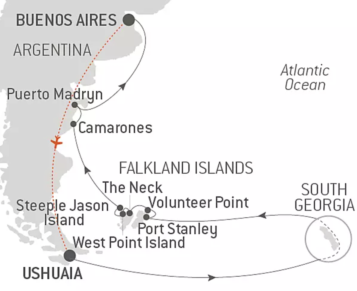對於第一次去南極的讀者,我們都會建議選擇造訪南極大陸的南極單島行程,無論是天數或是價格都較為親民。然而,有些讀者下船之後覺得不過癮,希望能補上福克蘭群島和南喬治亞島這兩個地點、但略過再次造訪南極大陸的路線。究竟有沒有這樣的行程呢?